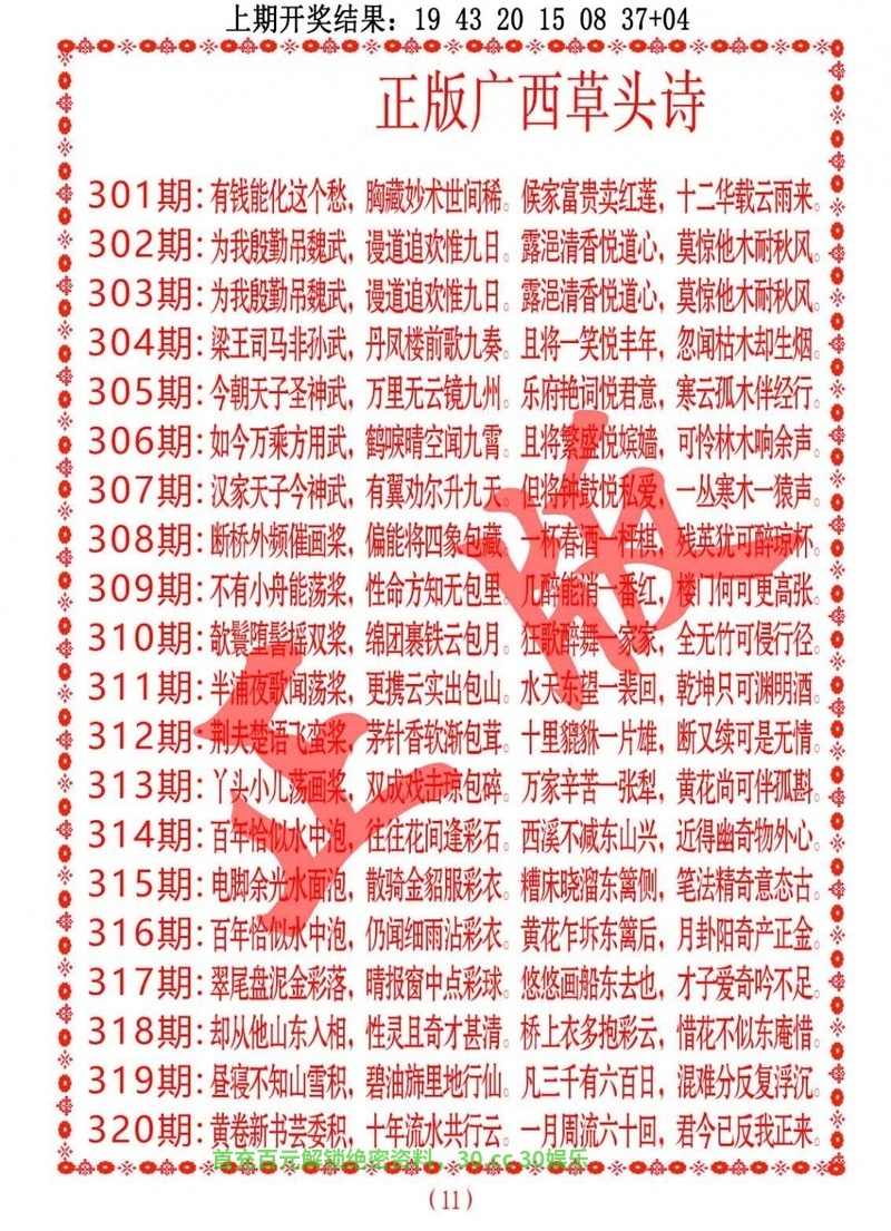 | 314期:〖高级③码〗10 23 32 |